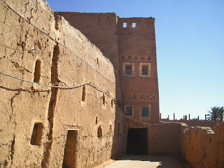 Com cada dia matinem ja que volem fer moltes coses, i deu ni do! Com a regal de reis veurem les Gorges del Dades, Ouarzazate i Ait Ben Haddou. La carretera fins a les gorges ens encanta i anem parant per fer fotos de pobles berbers de muntanya, preciós. No acabem de trobar les gorges i estem apunt de tornar enrere, però persistim i finalment les trobem, encara continuem una estona més per una carretera de corbes muntanya amunt. De tornada parem a un poblet, deixem el cotxe i ens endinsem creuant un rierol, per un poblet fet d'adob, com tots, amb unes vistes de postal. Seguim la carreta que voreja l'Atlas per la vessant sud fins a Ouarzazate, de camí veiem uns camells 'salvatges'. A Ouarzazate un noi ens fa una visita guiada pel poble per dos euros. Per aquí s'han rodat varies pel-licules, la veritat és que està molt tranquil i és molt bonic, veiem cigonyes, passem pel barri jueu (mella) i finalment entrem a la famosa Kasbha (10dirhams. Un edifici-fortificació de protectorat de comerciants, etc) que per fora és molt xulo, però el laberíntic interior està totalment vuit... En una mitja hora arribem a Ait BenHaddou, un poblet molt turístic que ens enamora. Primer de tot pillem un hotel (Baraka) que sortia a la Lonely per15€ amb lavabo (l'aigua era freda així que no el vam aprofitar) i esmorzar inclòs. Teníem gana i de camí vam parar a un bar amb terrassa amb vistes al poble per menjar, com no, un tajine. Tot travessant un riu quasi sense aigua vam entrar a aquest pintoresc poble, patrimoni de la humanitat, que es perfila contra un turonet d'arenisca rosada, i passant quasi de casa en casa s'arriba a la cima on hi ha un edifici amb bones vistes: palmeral, muntanyes desertes de roca, i més enllà muntanyes nevades. El poble en si és xulíssim, com de color ocre, per aquí és va rodar Gladiator..., Ja de tornada, quasi fosc, anant precisament a buscar la plaça del Gladiator, una dona ens convidà a casa seva per fer una ullada, i vam amb tot el morro li vam demanar un té, que ens vam prendre acompanyat d'ametlles, en companyia d'ella i tres filles, molt divertit. Apunt de sortir vam tenir l'incident més divertit: dues vedelles, que les havien deslligat a última hora, donaven saltirons com boges i ens tractaven d'envestir com si estiguéssim en 'unos encierros'. Vam sopar al mateix hotel, on vam xerrar amb un noi d'allà que ens va fer canviar el planning del dia següent, ja que volíem anar per la carretera interior fins a Telouet, però ens va dir que amb el nostre cotxet millor que no...